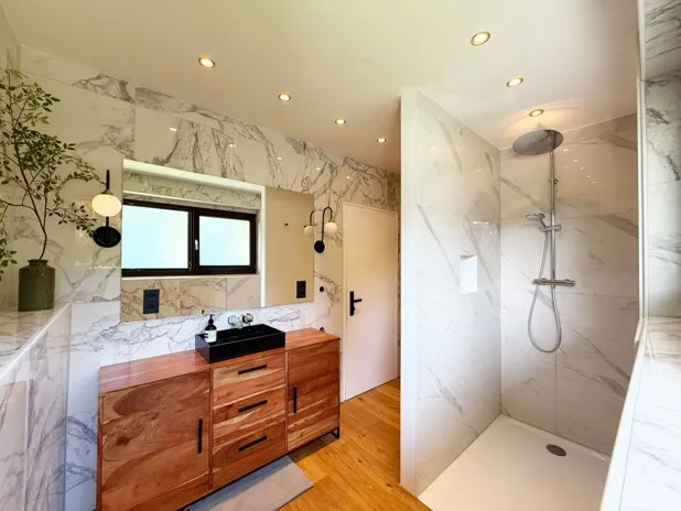 Von 2018 bis 2024 wurden Haus, Technik und Außenbereich umfangreich modernisiert und umgebaut. Die Ausstattung mit viel Liebe zum Detail ist zeitlos elegant, die Haustechnik
