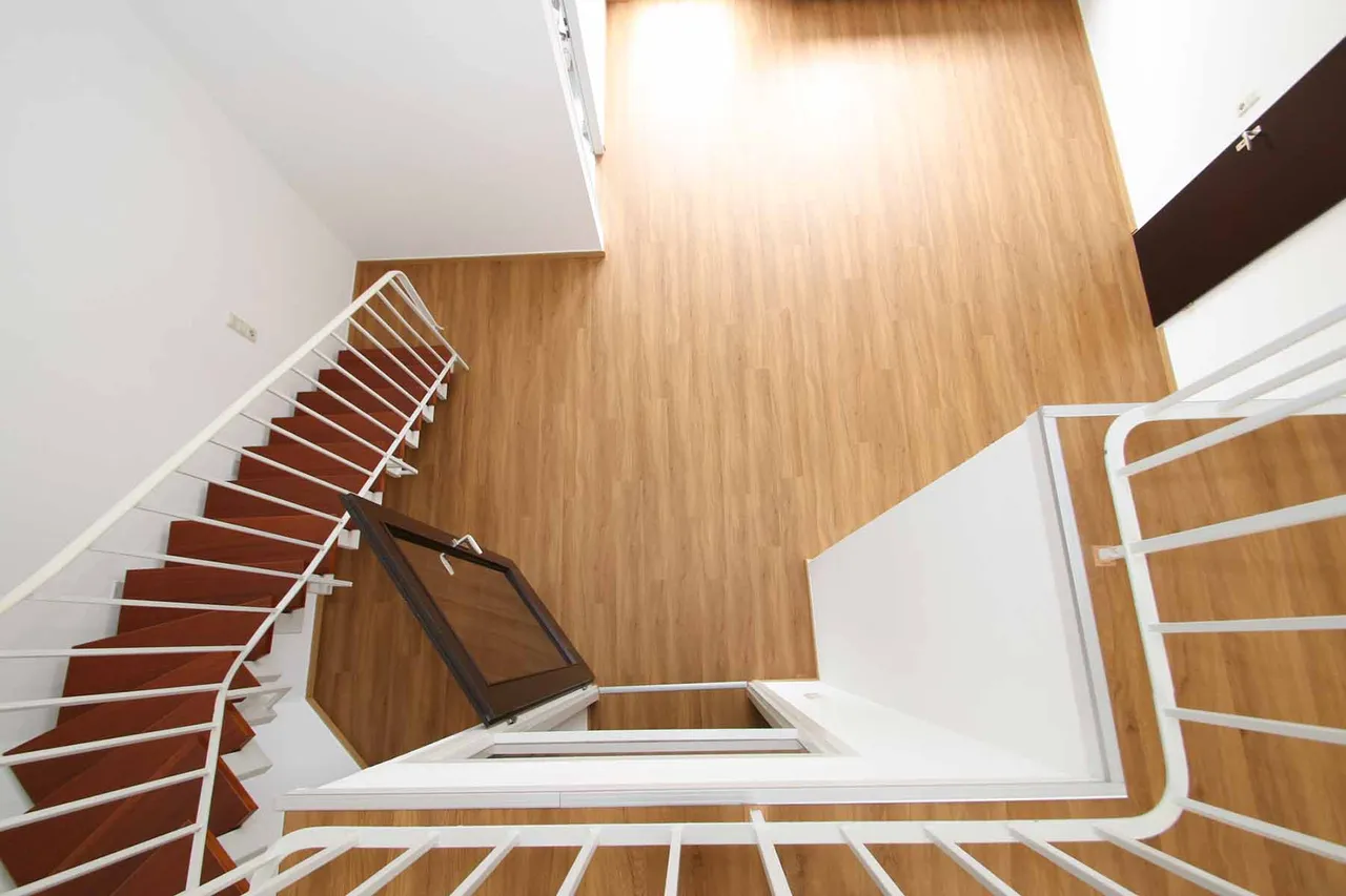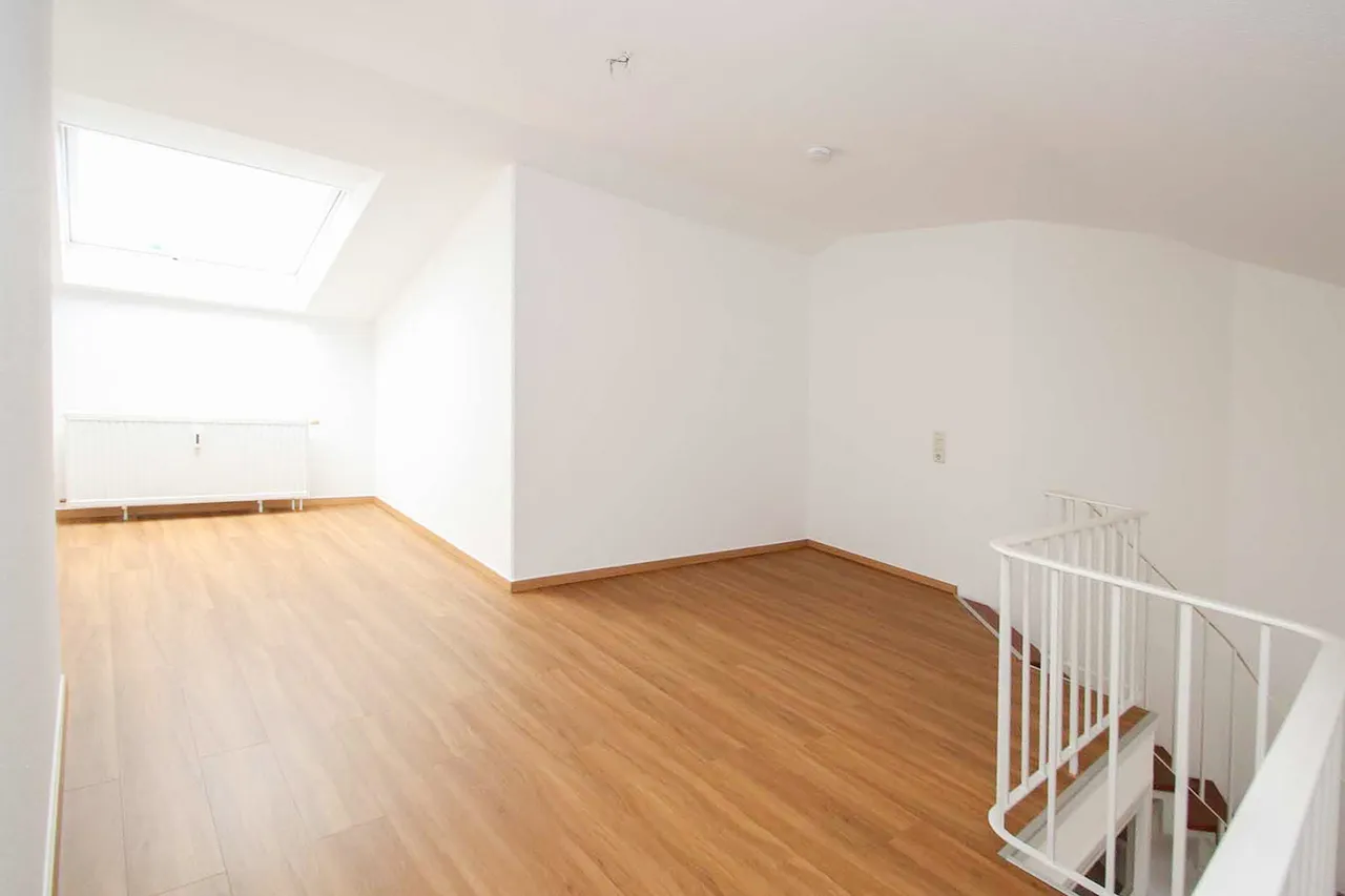 Die interessant geschnittene und helle Wohnung befindet sich im 2. Obergeschoss eines Sechs-Parteienhauses aus dem Baujahr 1989. Etwa 65 m² Wohnfläche verteilen sich auf zwei Ebenen.