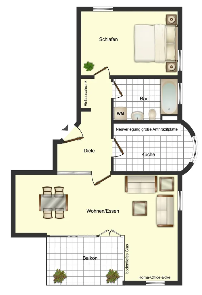 - Küche mit großen Anthrazit-Platten neu verlegt