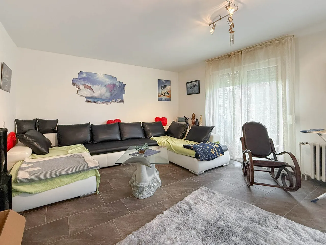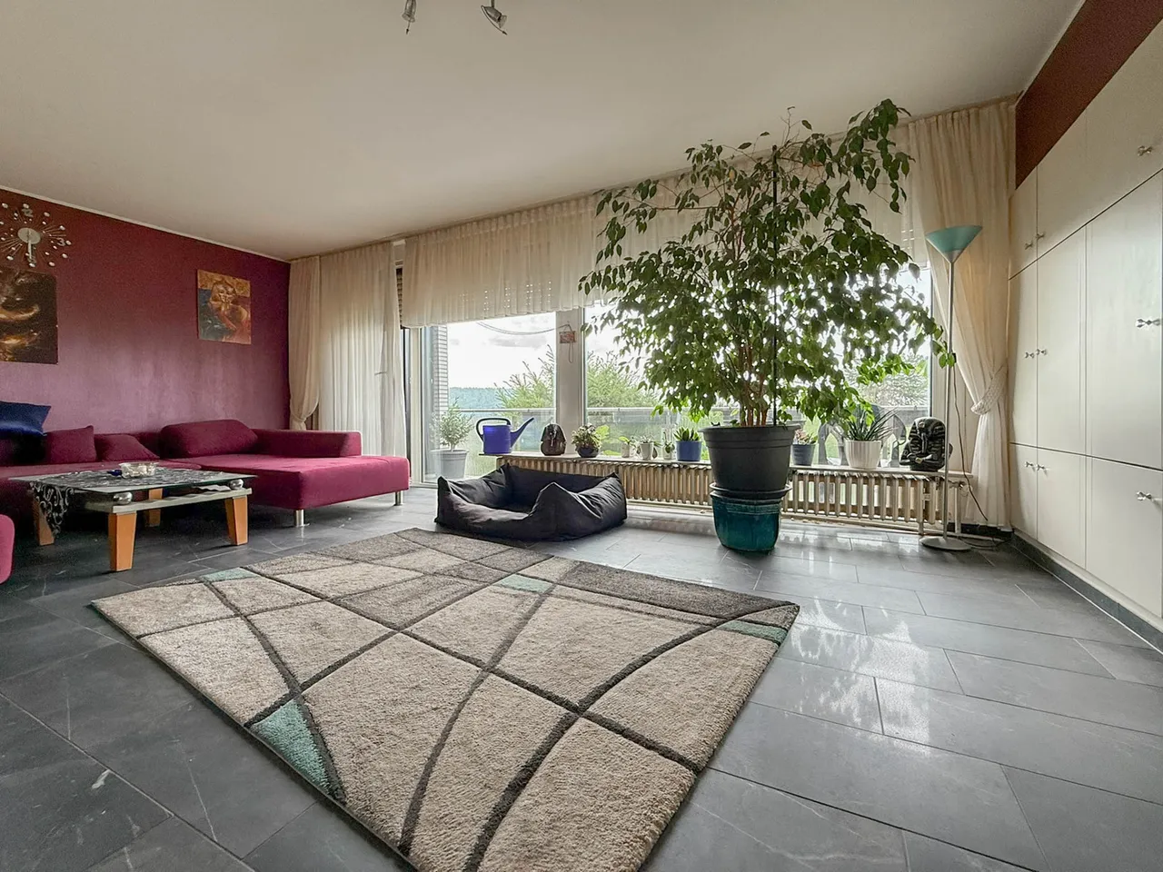 In der Eingangsebene begeistert das großzügige Wohnzimmer mit angrenzendem Essbereich und Zugang zum überdachten Balkon. Bodentiefe Fensterelemente sorgen