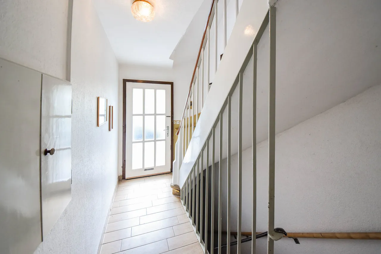 Ursprünglich als Zweifamilienhaus genutzt, eignet sich diese charmante Doppelhaushälfte mit zwei separaten Wohnungen ideal für die große Familie oder als Mehrgenerationen-Haus. Sie präsentiert sich gepflegt in weitgehend baujahrtypischem Zustand.