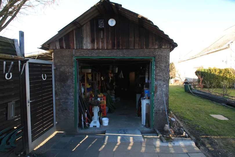 Das Anwesen besteht aus einem Zweifamilienhaus, Scheune, Garagen und kleineren Nebengebäuden. Eine eigene Zufahrt führt auf das malerische Grundstück mitten in der Natur.