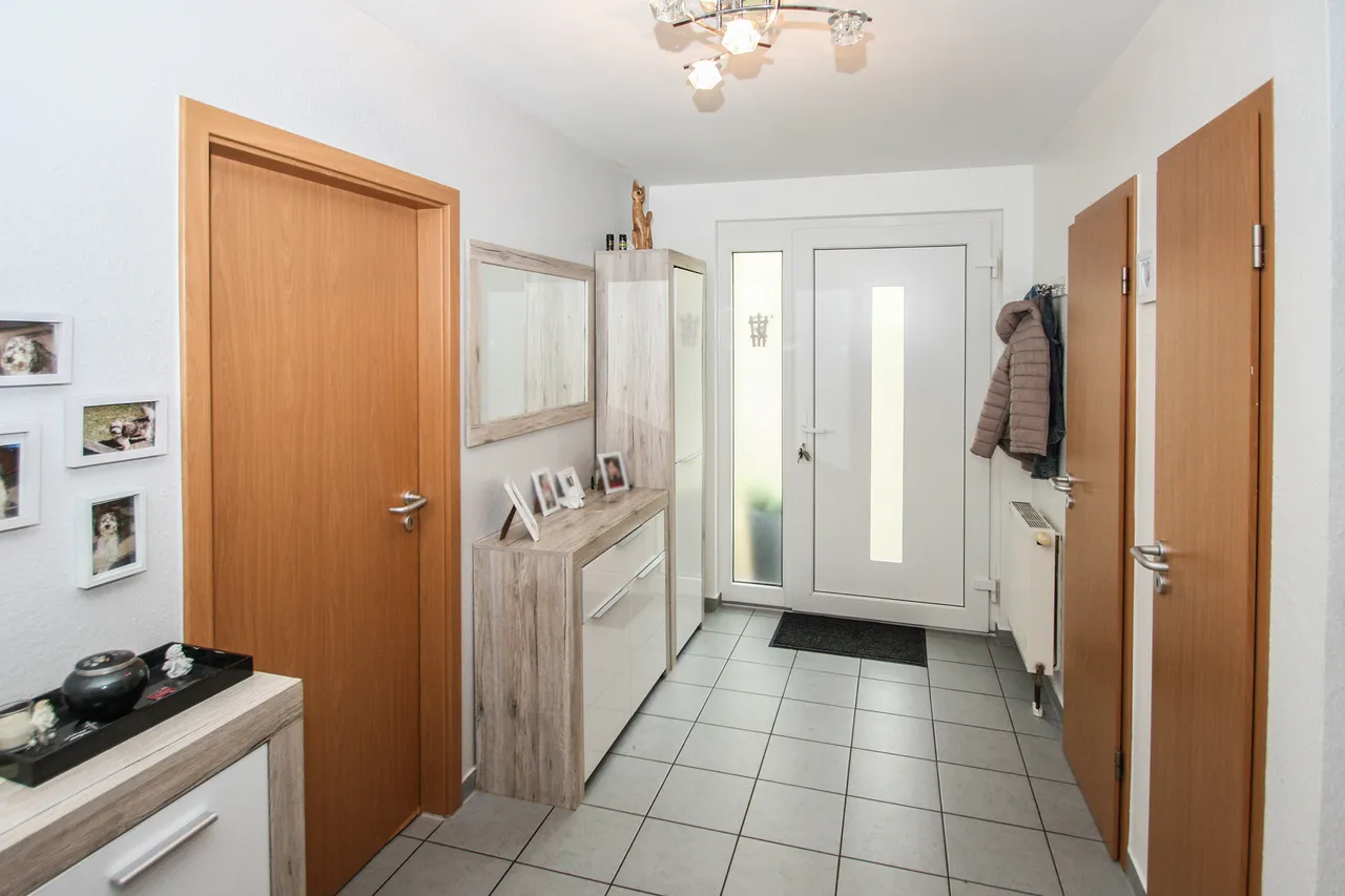 Hier stehen Ihnen familientaugliche 145 m² auf drei Wohnebenen zur Verfügung. In der Eingangsebene finden