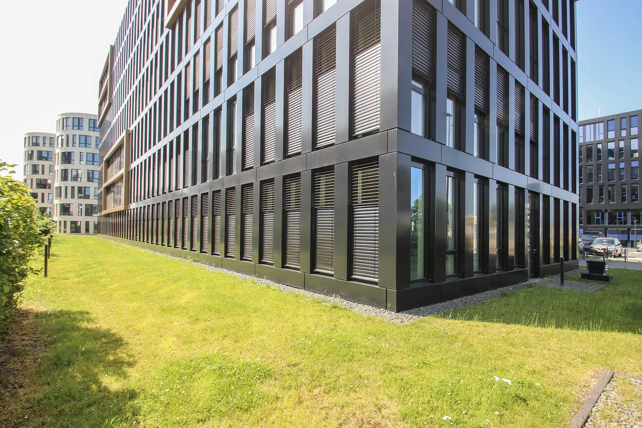Dieser Bürokomplex befindet sich im Stadtteil Lohausen. Hier sind die drei bekannten "L" wie Lage, Lage und nochmals Lage wichtig. Hervorragende Verkehrsverbindungen, die direkte Nähe