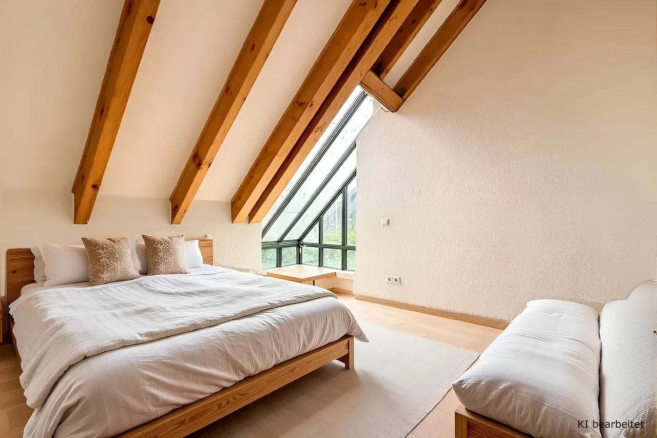 Dieses ausgefallene Ensemble vereint eine Symbiose aus Licht und Raum.Es liegt zurückgezogen, aber doch ausgesprochen verkehrsgünstig und ist perfekt für alle, die das Besondere suchen und großzügiges Wohnen lieben.