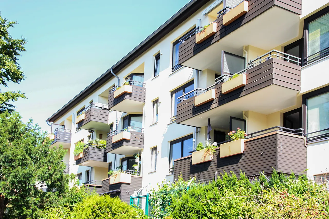 - sehr gepflegtes, von außen in weiß gehaltenes Objekt, bewährte Bast-Bau-Qualität mit jeweils nur 3 Etagen inmitten von Gärten, nach hinten gelegen, ganz ruhig, 3. Obergeschoss MITTE