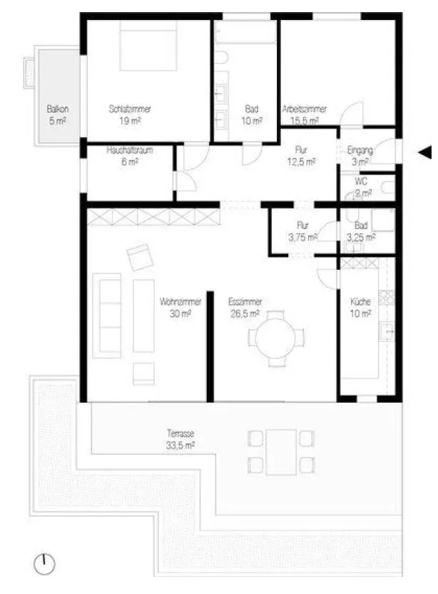 - Zwei bis drei Schlafräume möglich (oder begehbarer Kleiderschrank)