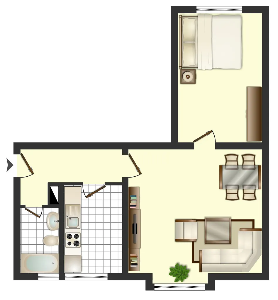 Zwei Wohn- und Schlafräume verteilen sich auf ca. 57 m² Wohnfläche. Die Küche ist separat. Das Wannenbad mit Tageslicht vervollständigt das Raumangebot.