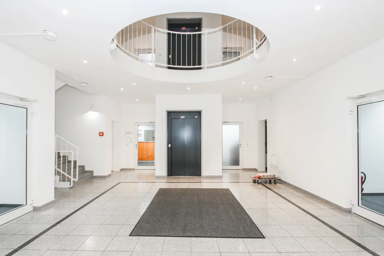 Die ca. 228 m² große Büroeinheit befindet sich im 1. Obergeschoss. Helle Büroräume, zeitgemäße Bodentanks mit Netzwerkverkabelung, Teeküche, Klima, Aufzug und Tiefgarage lassen keine Wünsche offen. Eine angenehme Arbeitsatmosphäre ist