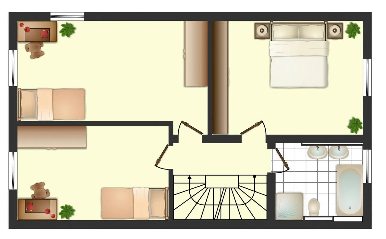 - Vier Schlafräume, zwei top-Bäder, Gäste-WC