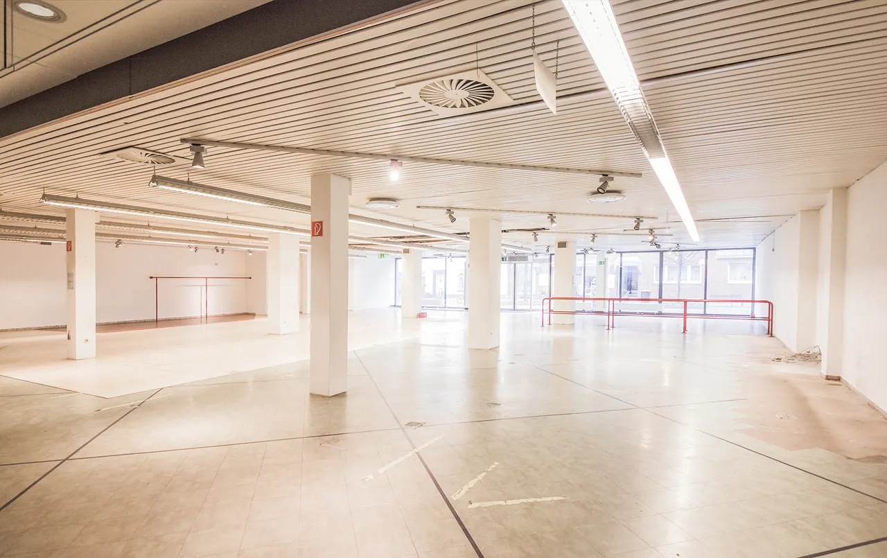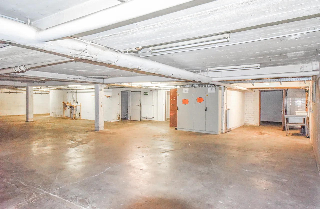 Das puristisch ausgebaute Ladenlokal befindet sich in einer geschlossenen Zeilenbebauung mit Lager und rückwärtiger Andienung im Erdgeschoss und weiterem Lagerbereich im Kellergeschoss.Ausstattung